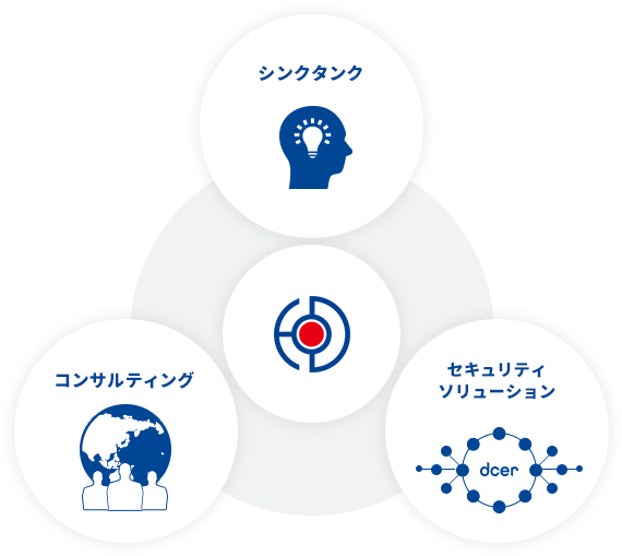 サイバーディフェンス分野を含む経済安全保障領域において、公開情報のみならず、日本では通常入手困難な人的情報も収集・活用しながら、シンクタンク、コンサルティング、セキュリティソリューションの3つの機能を柱に、日本の社会および企業の持続的な発展を支援します。