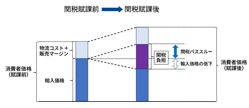 - トランプ関税の消費者価格への転嫁は「関税パススルー」に依存し、パススルー率は輸入量の価格感応度や市場構造により異なる。